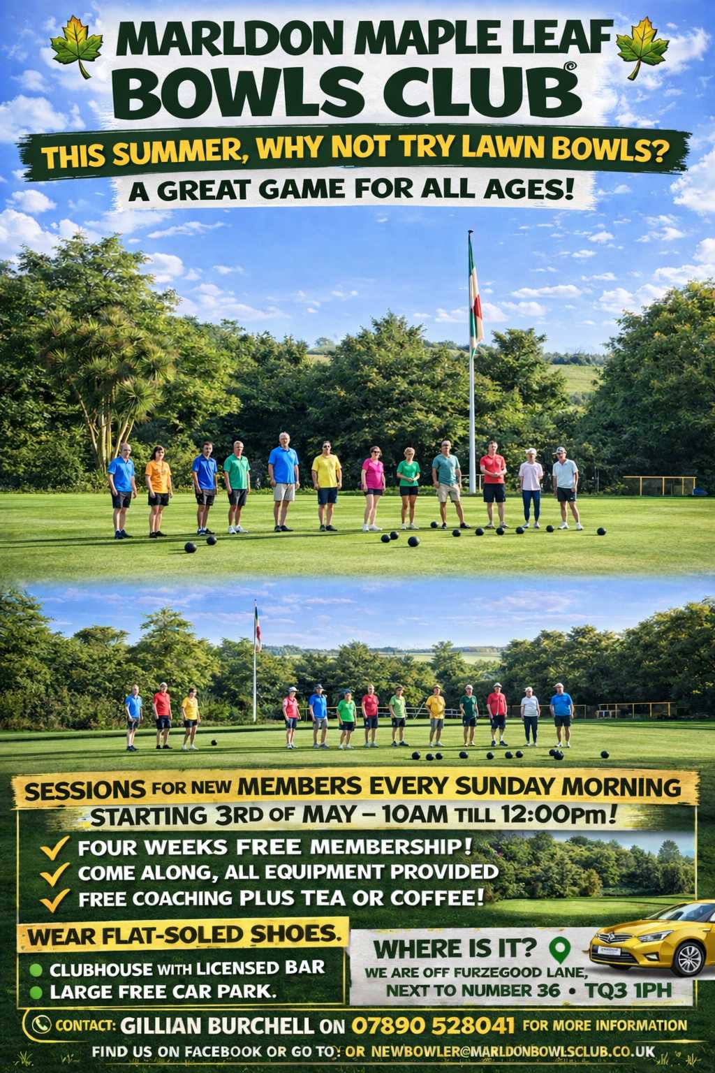 April 11th the Bond Bowls shop in Crediton are having a 10% off Day for anyone planning to buy any new kit, with World Indoor Champion Robert Paxton in attendance. Please attend our Spring meeting first if you are a Marldon Member.