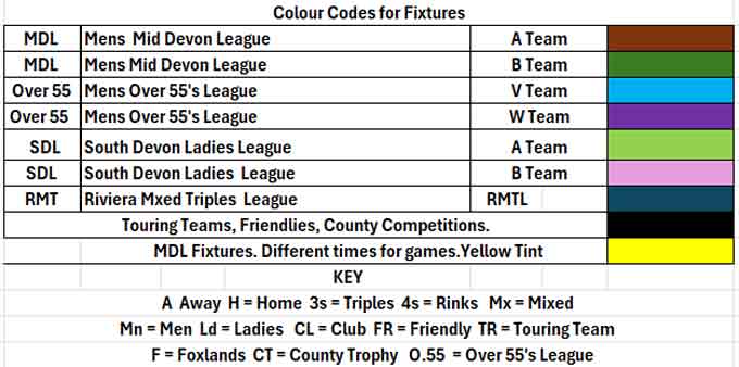 The fixtures listed on this site should be used in conjunction with the fixtures shown in our ONLINE RINK DIARY and the diary in Captains' office.